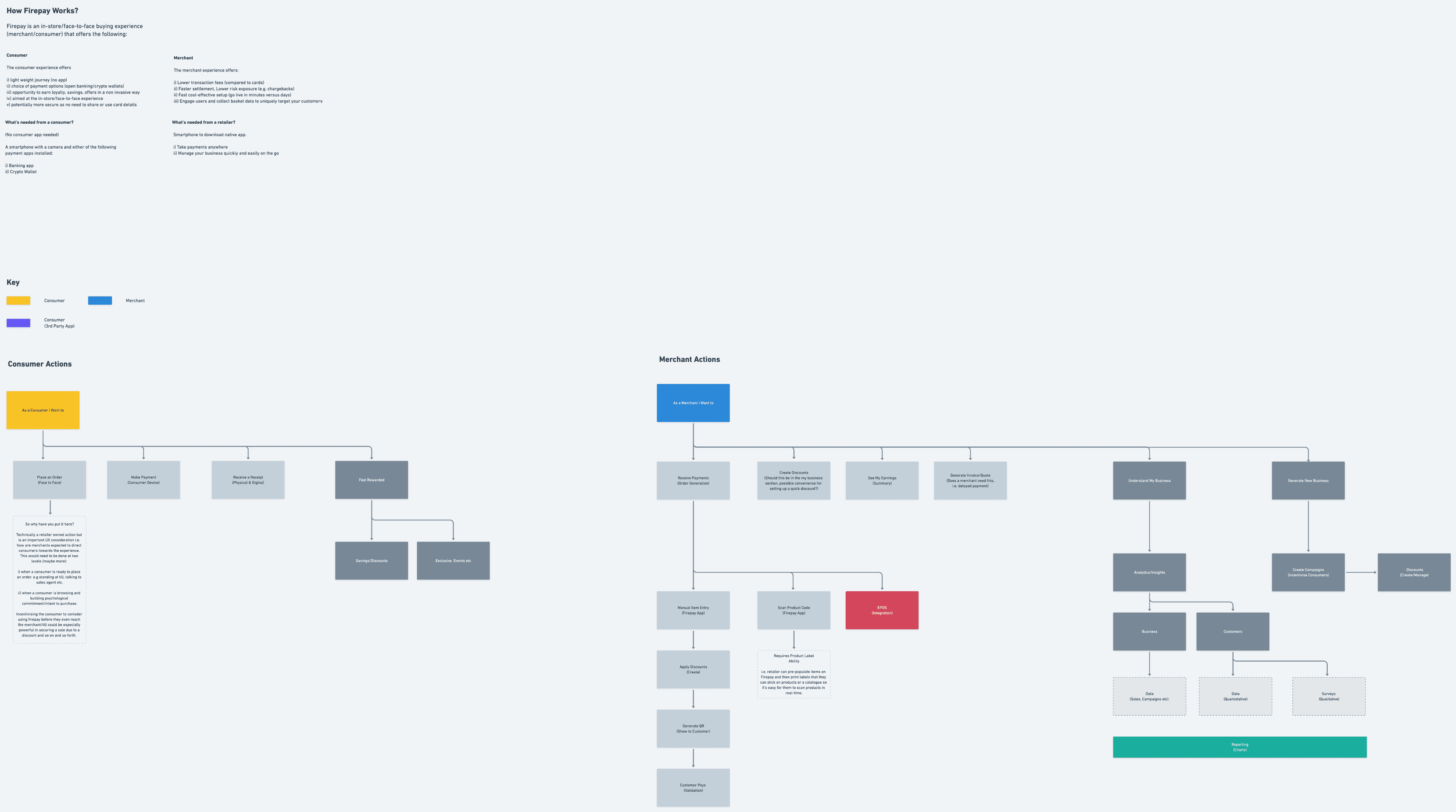 Extensive research and modelling taking a single line concept to a final MVP over a number of months. We modelled everything across the eco-system from the base consumer/merchant actions to the end to end payment journey as well as extensive loyalty campaign management flows to ensure how user behaviour could be moved from one state to the other.